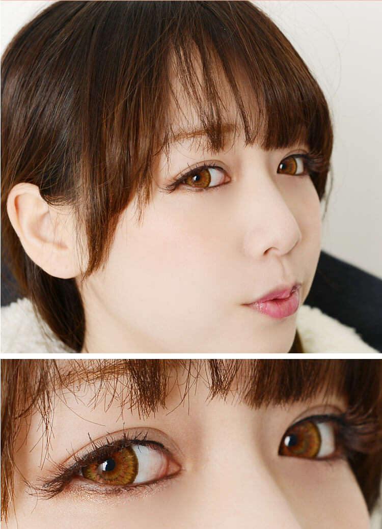 Review : The brown outline has 3 colors which is very natural and bright! As three colors are well mingled and mixed, the lens is very natural and sophisticated. The size is quite big which makes your eyes look much bigger. ❤