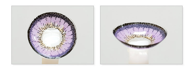 There is absolutely no need to worry about the thin coloration of the contact lenses. The contact displays clear cut violet sparkles even from a far distance. In accordance with the black pupil base, the emphasized circumference of the contact maximizes the displayed effect of the contact lenses, which can make you appear both girlish and mature, depending on your makeup of the day!